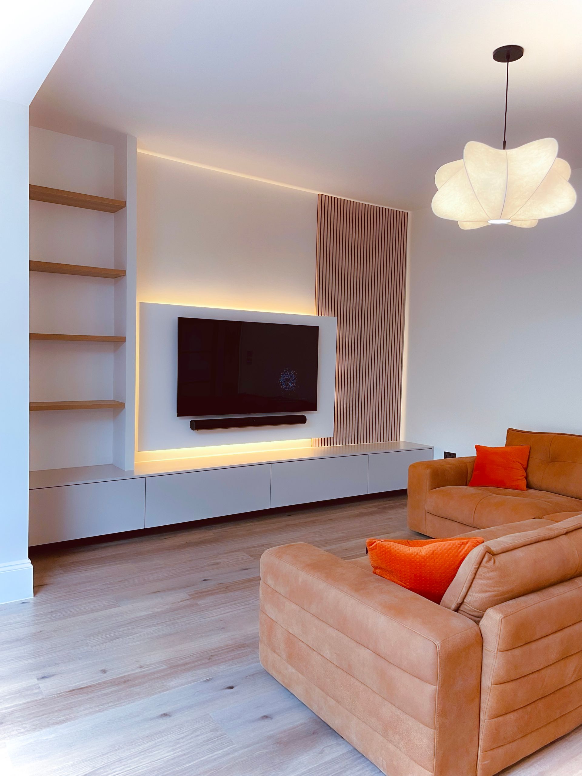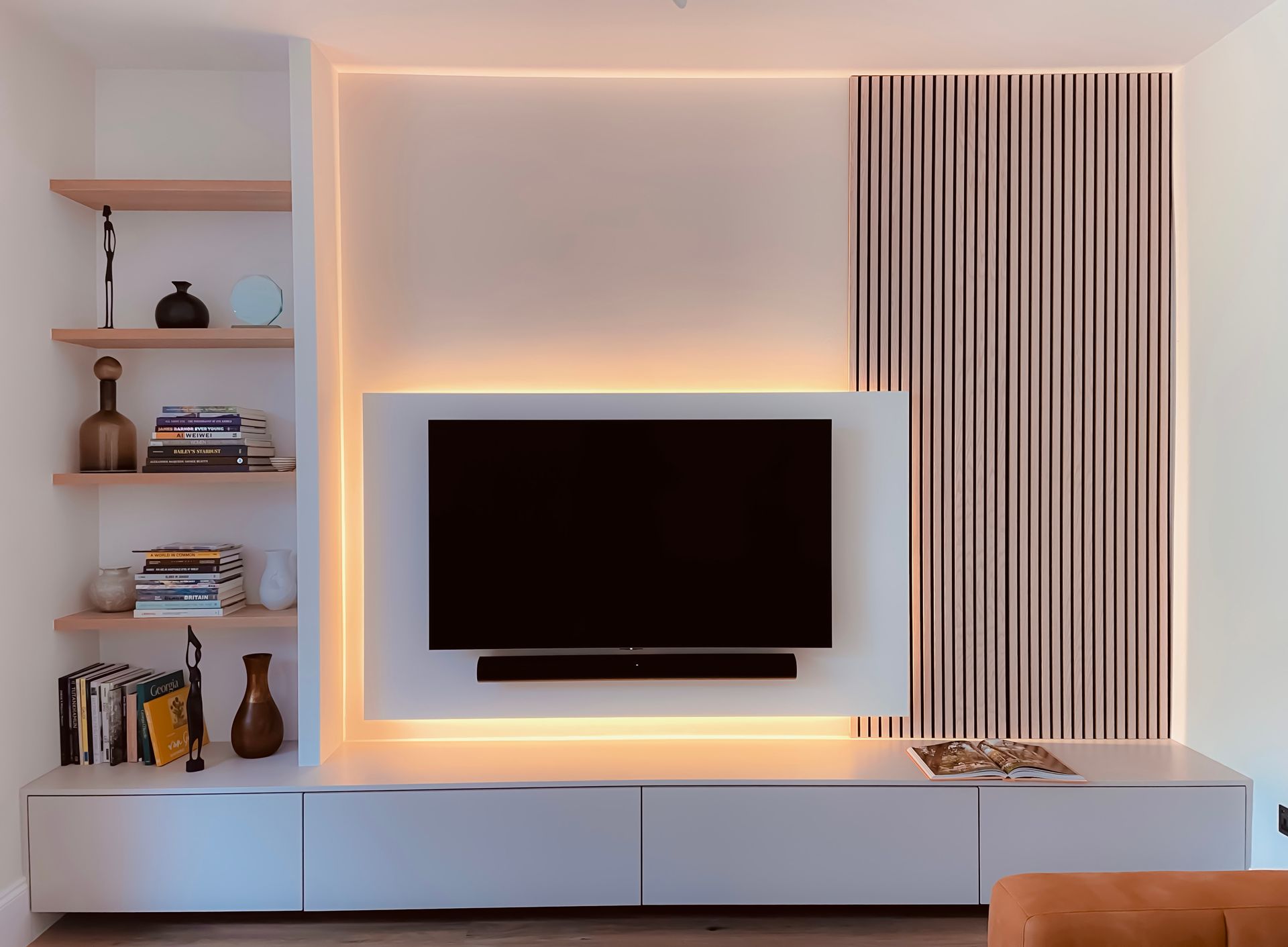 Whether you're searching for a bookcase, full wall wardrobe, or alcove wardrobe, we have it. Our experts work with you to create pieces that perfectly complement your home, ensuring your living room is both beautiful and functional. Let us bring your vision to life!